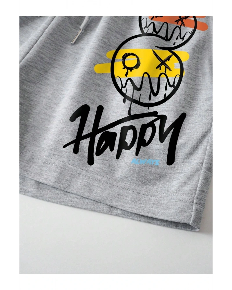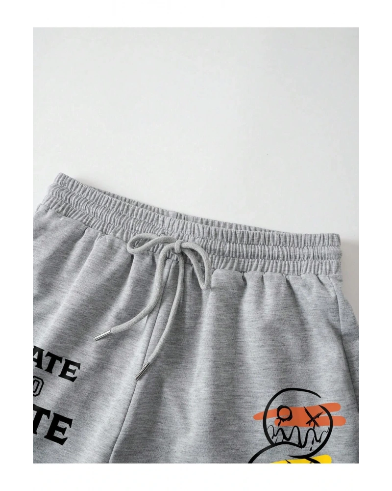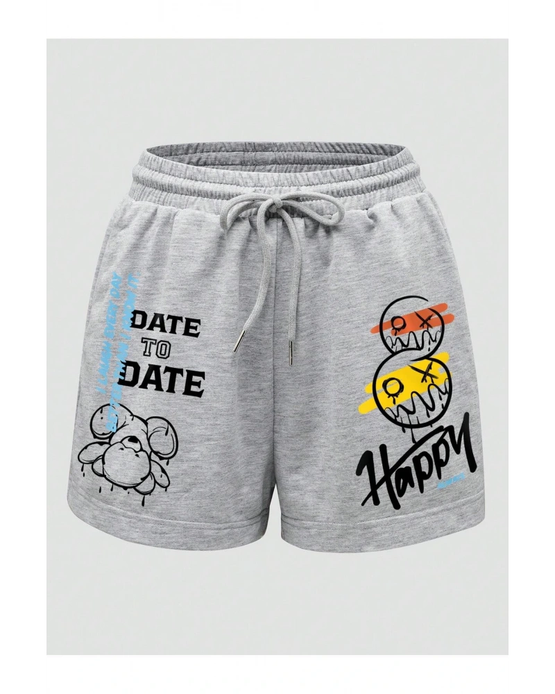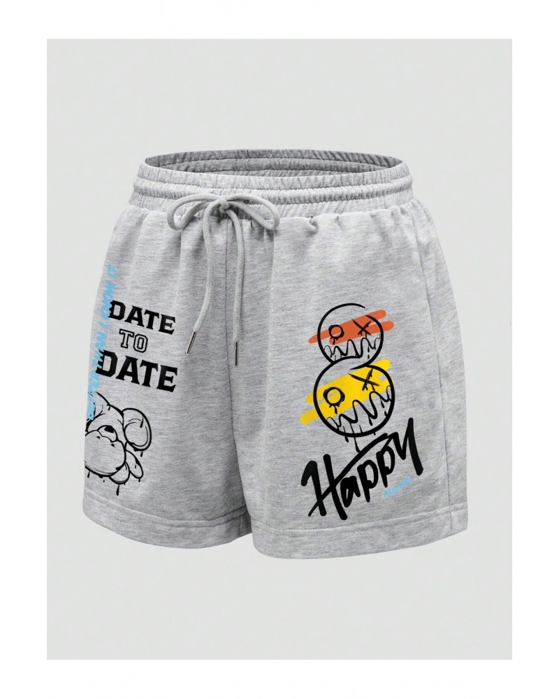 Cartoon & Letter Graphic Drawstring Waist Şort