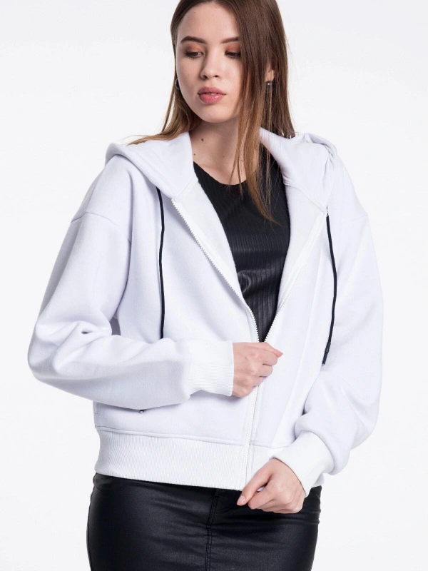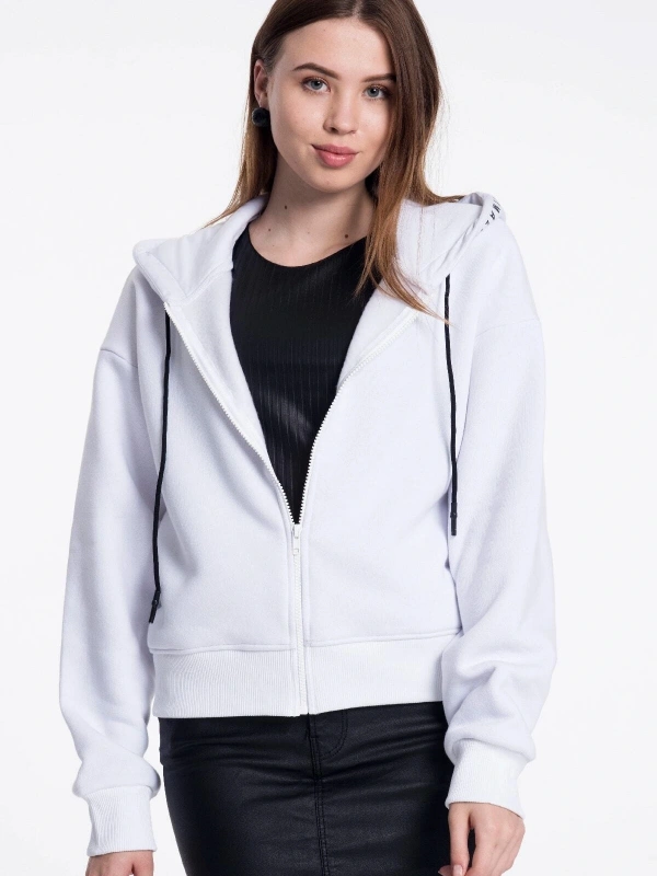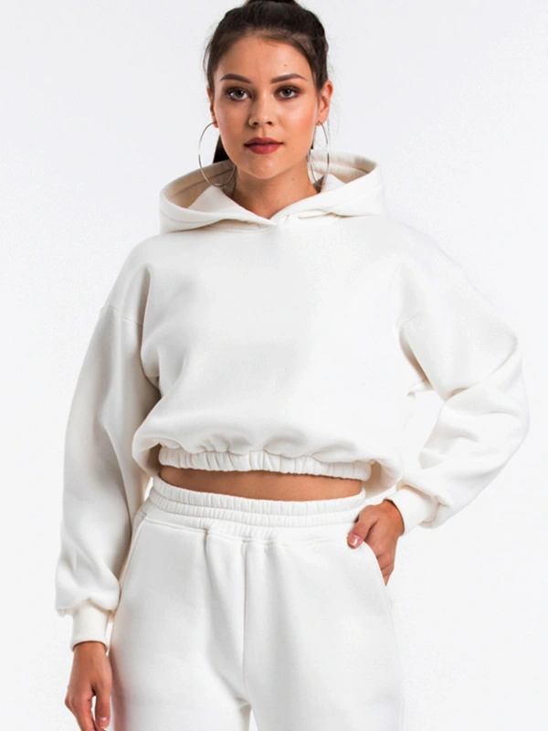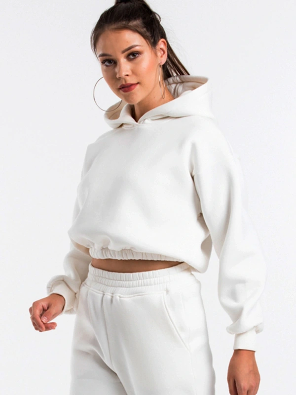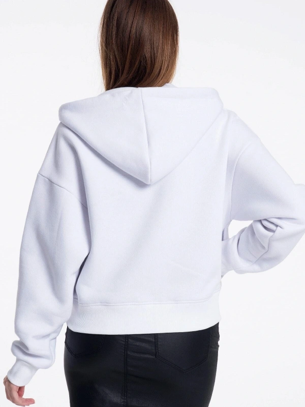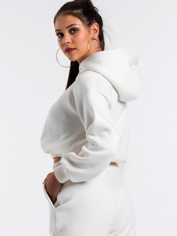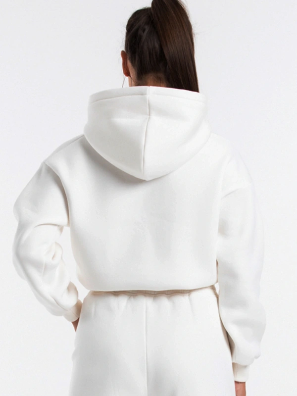 Kadın Ekru Renk Kapüşonlu Crop Kesim Sweatshirt Cy84196 Beyaz