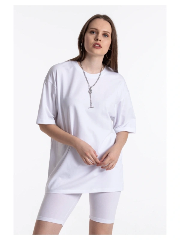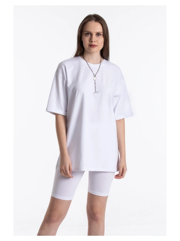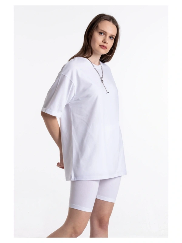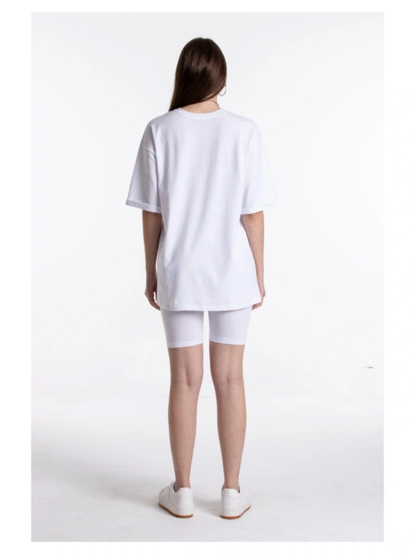 Beyaz Renkli, Düz, Kısa Kollu Boyfriend T-shirt Ve Biker Tayt Takım