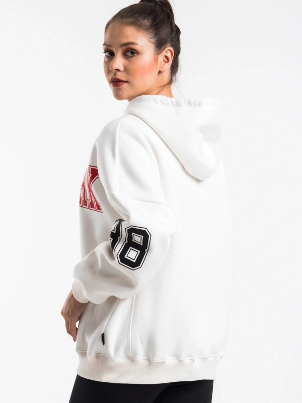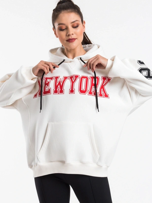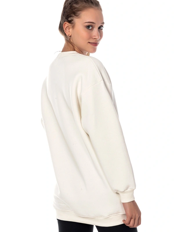 Kadın Ekru Renk Baskı Detaylı Oversize Sweatshirt Cy84191 Beyaz