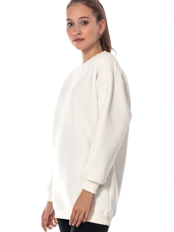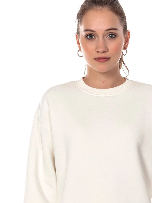 Kadın Ekru Renk Uzun Kesim Basic Örme Sweatshirt Cy84197 Beyaz