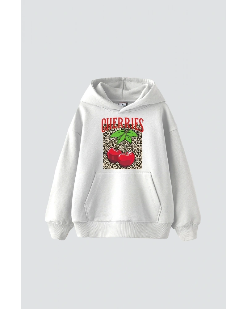 Cherries Leopard Baskılı Oversize Unisex Beyaz