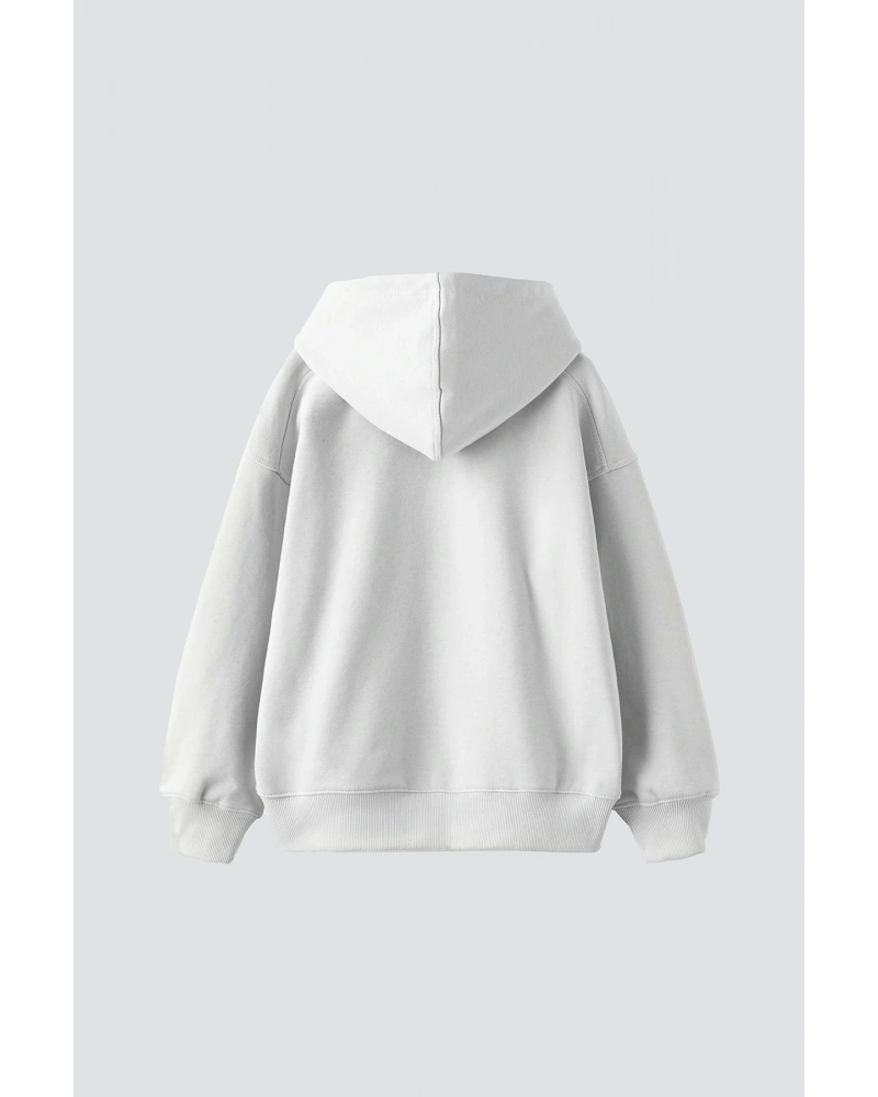 YQYQ----Oversize Mor Saçlı Lila Genç Kız Tasarım Baskılı Unisex Kapüşonlu Sweatshirt Hoodie Beyaz