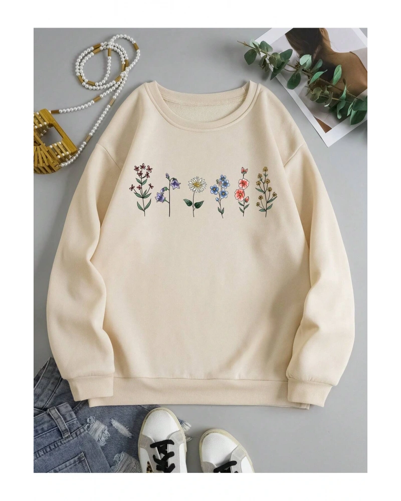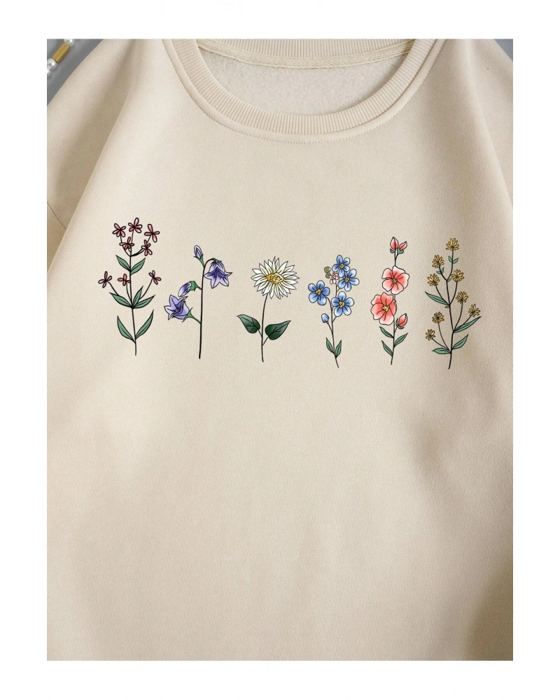 Çiçek Desenli Termal Astarlı Sweat Bej