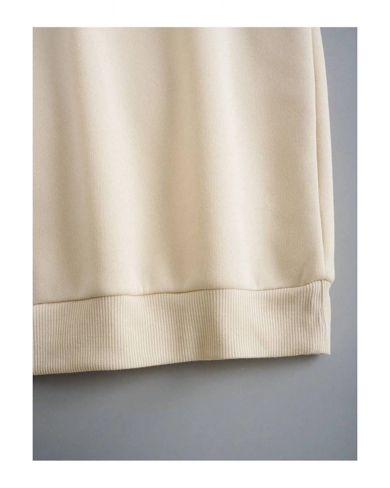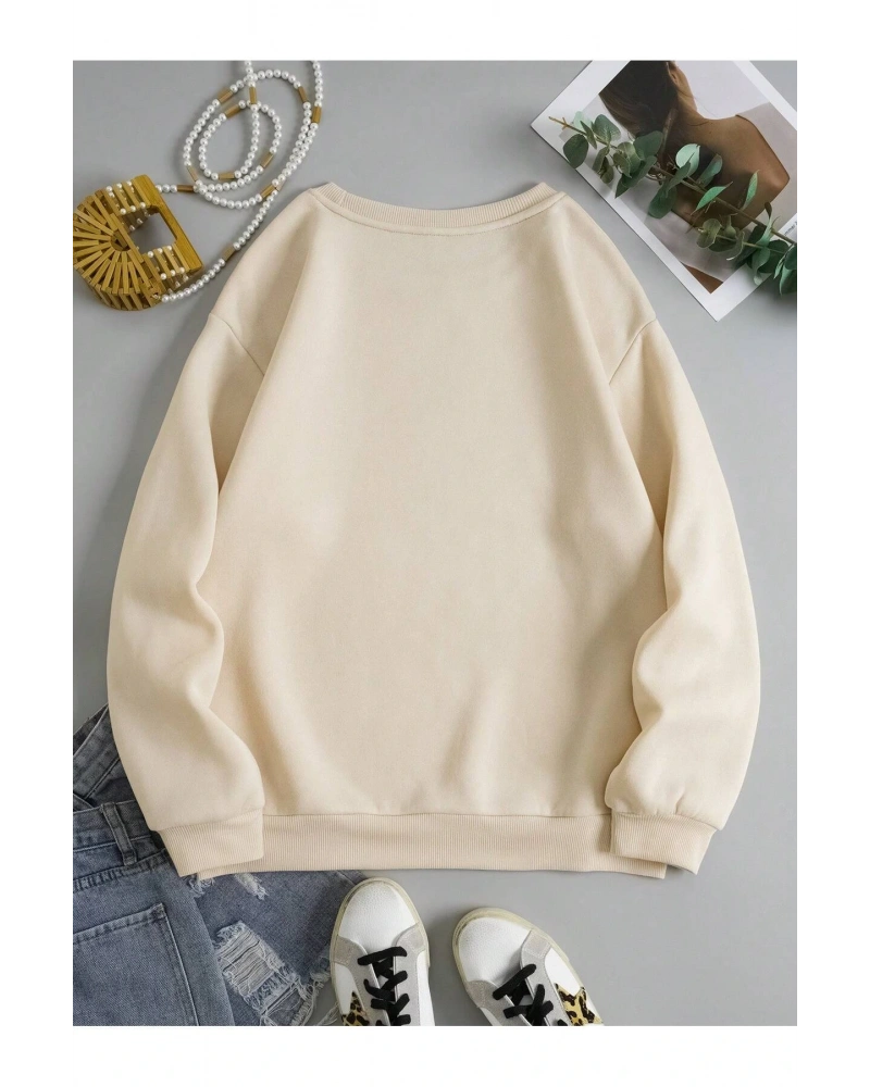 Sloganlı ve Yıldız Desenli Düşük Omuzlu Oversize Sweat Bej