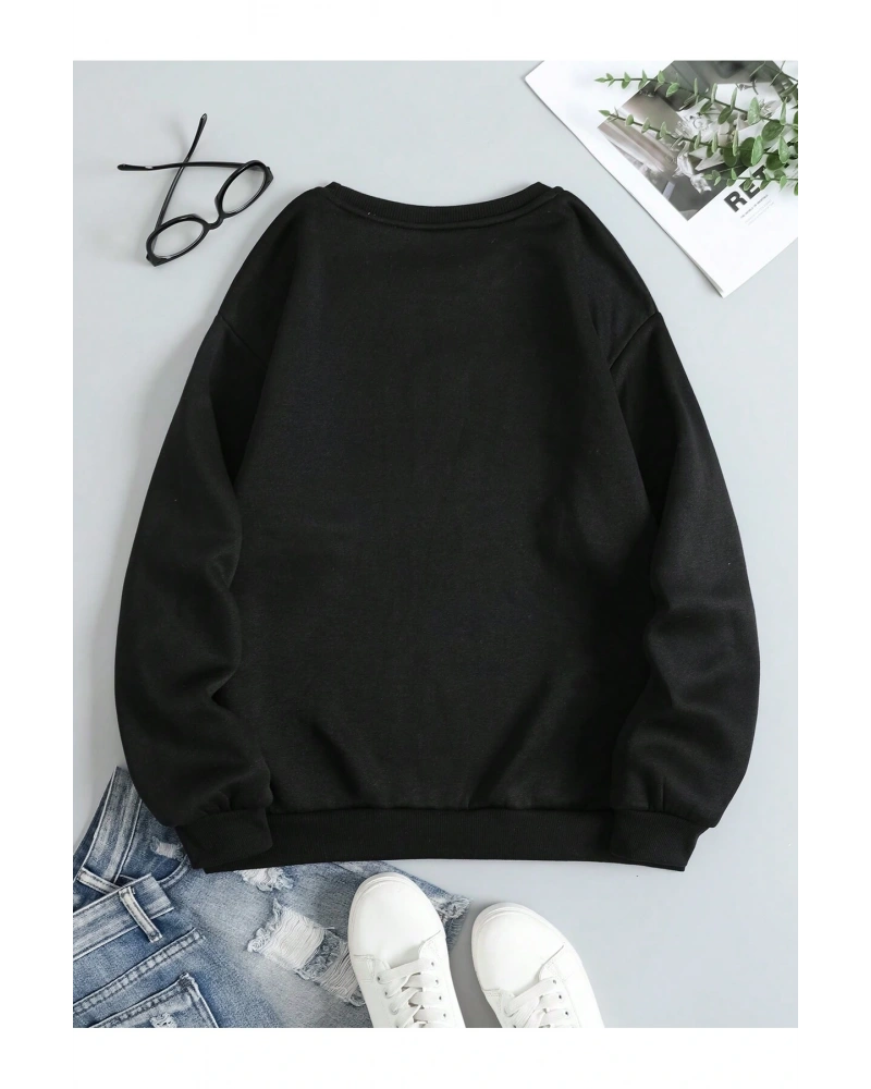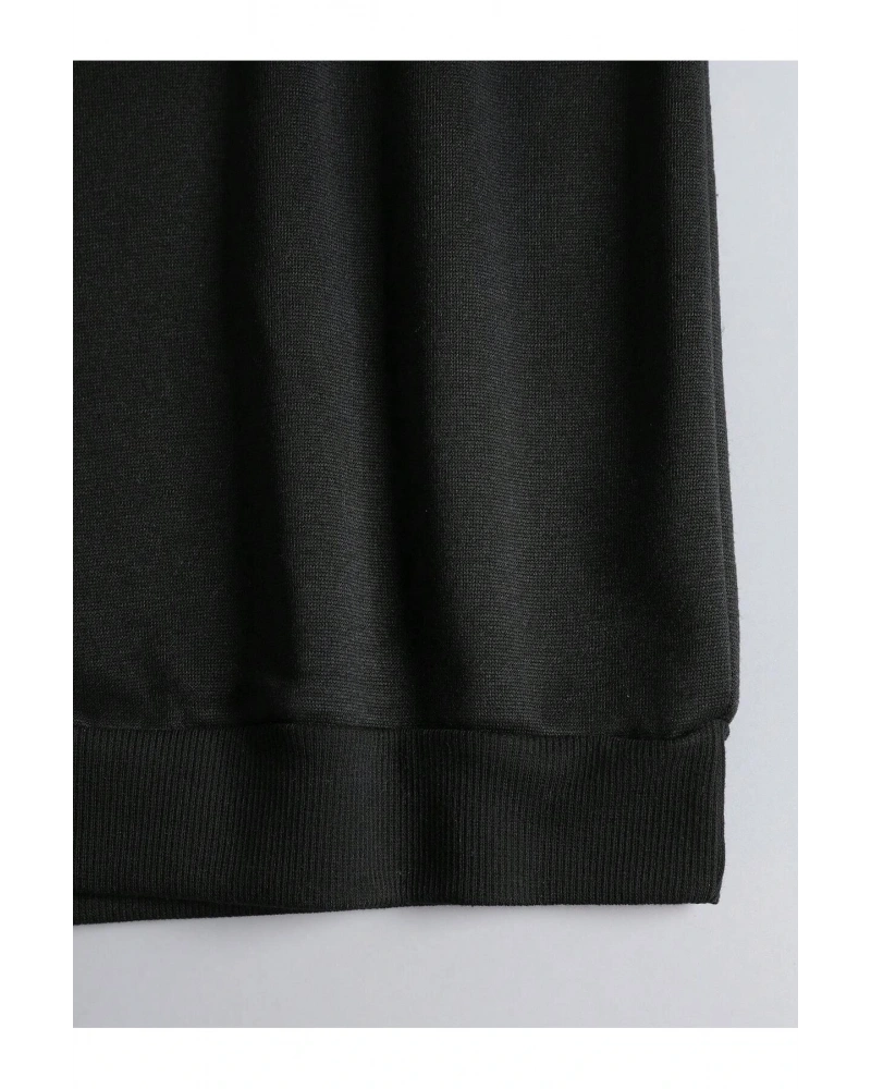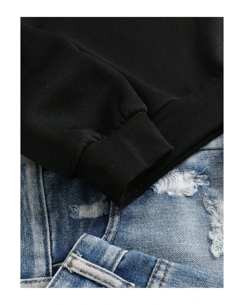 Siyah Yakasız Tüy Baskılı Unisex Sweatshirt