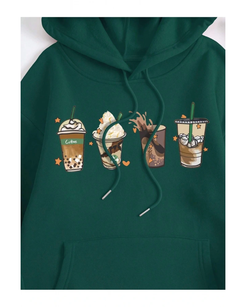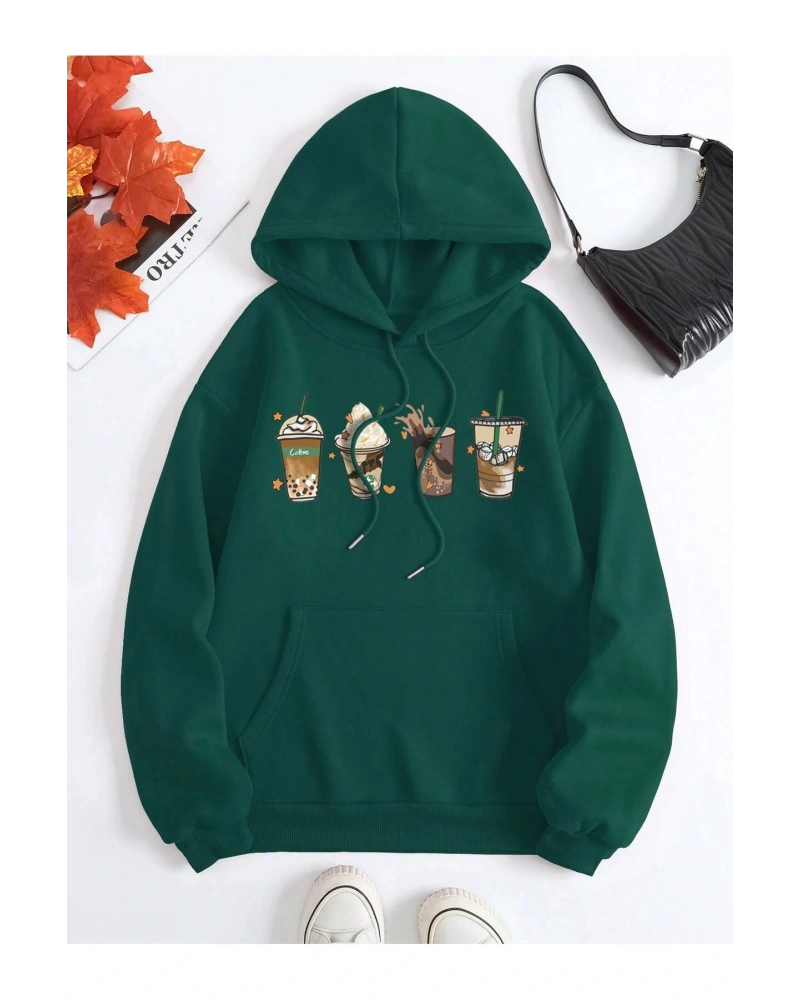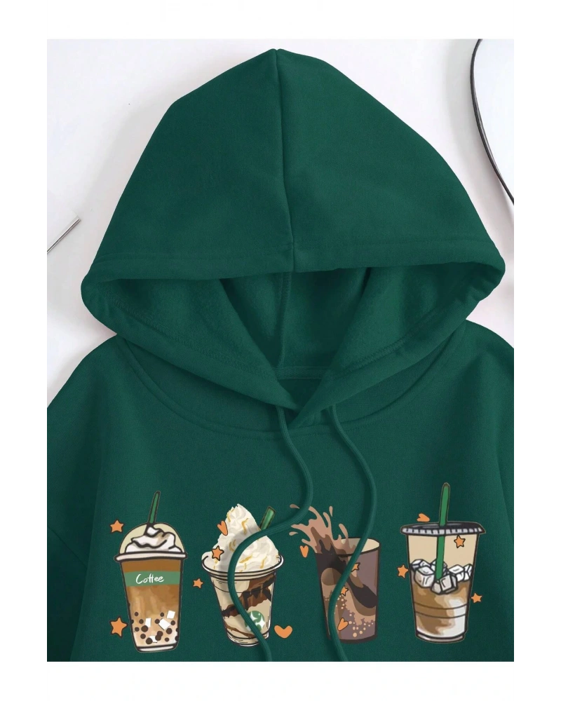 Coke serisi Cartoon Graphic Kangaroo Pocket Drawstring Thermal Lined Hoodie