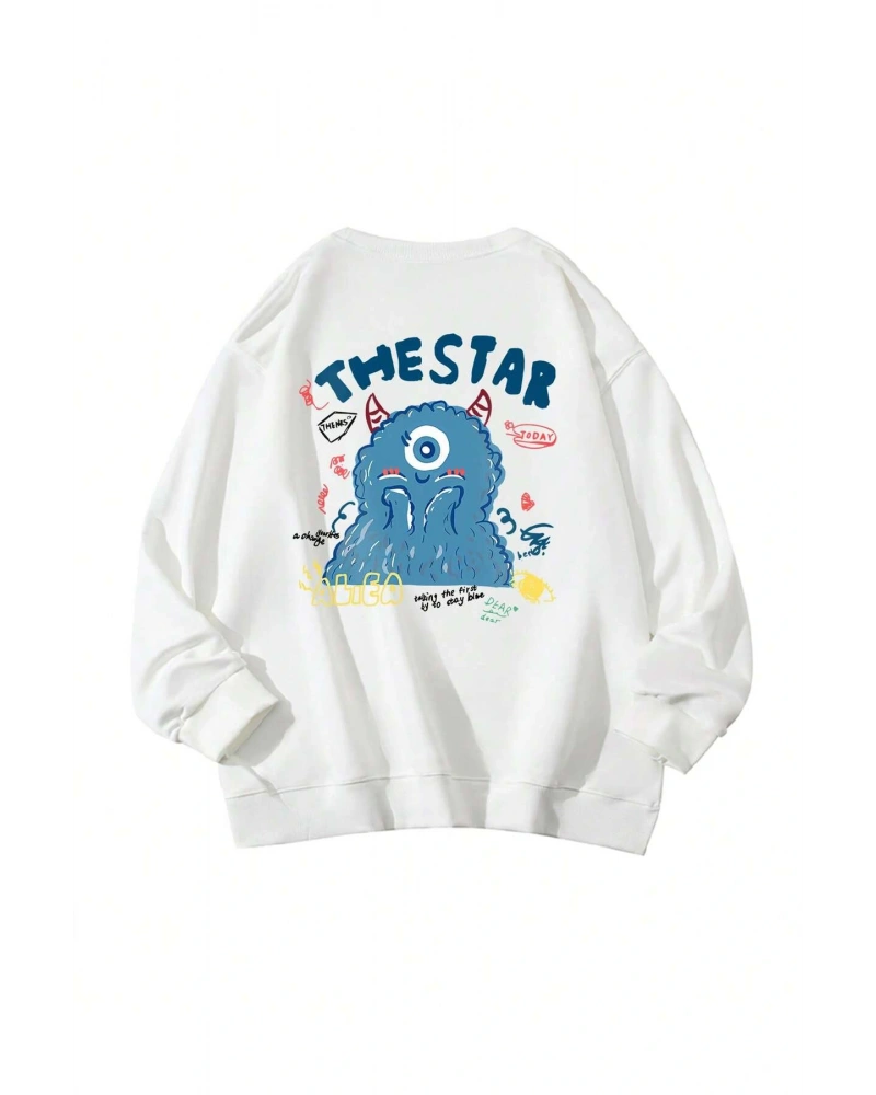 Manfinity EMRG Cartoon And Slogan Graphic Sweatshirt Beyaz