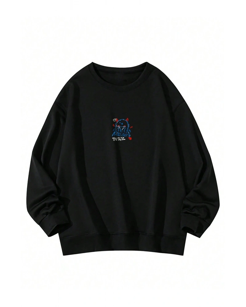 Siyah Yakasız Tüy Baskılı Unisex Sweatshirt