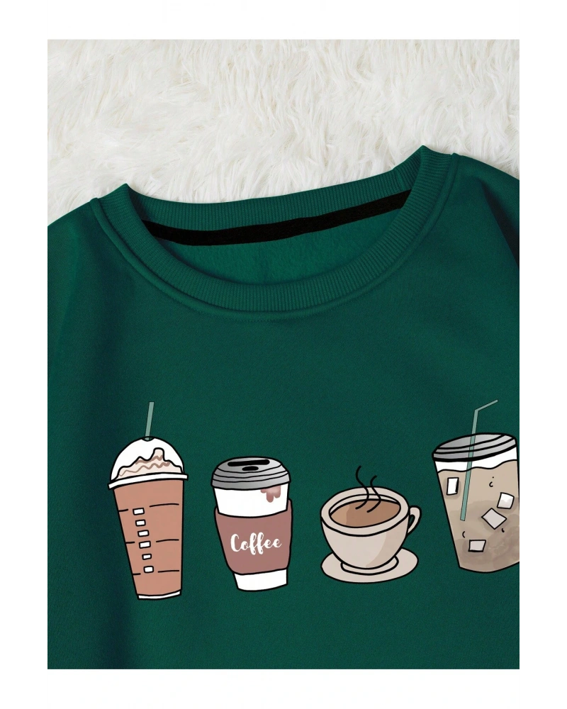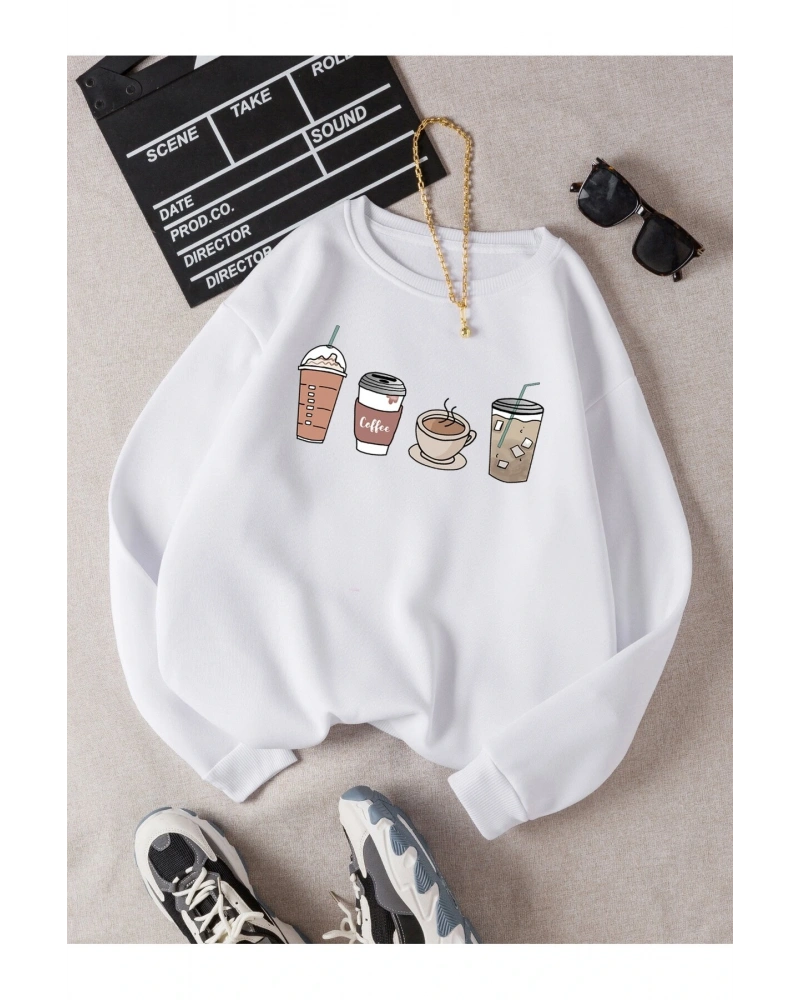 Coke serisi EZwear Coffee Print Thermal Lined Sweatshirt