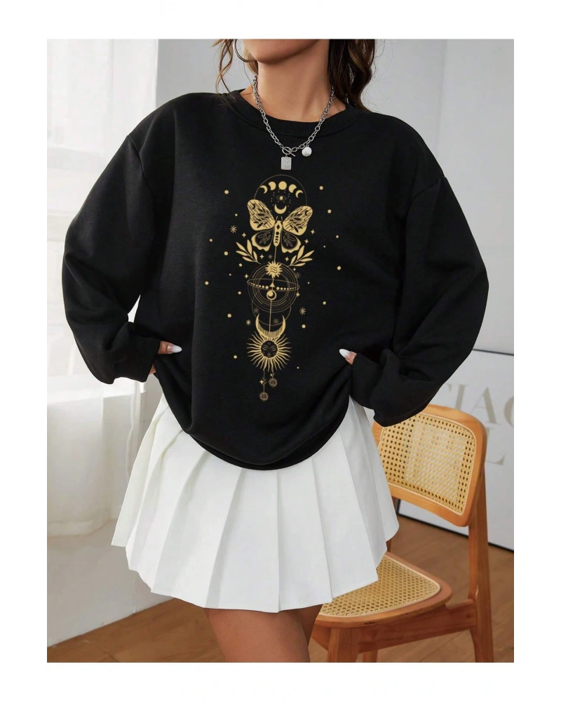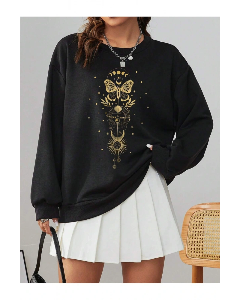 Coke serisi EZwear Sun & Moon Print Drop Shoulder Sweatshirt