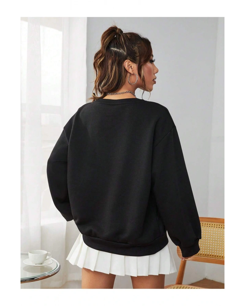 Siyah Yakasız Tüy Baskılı Unisex Sweatshirt