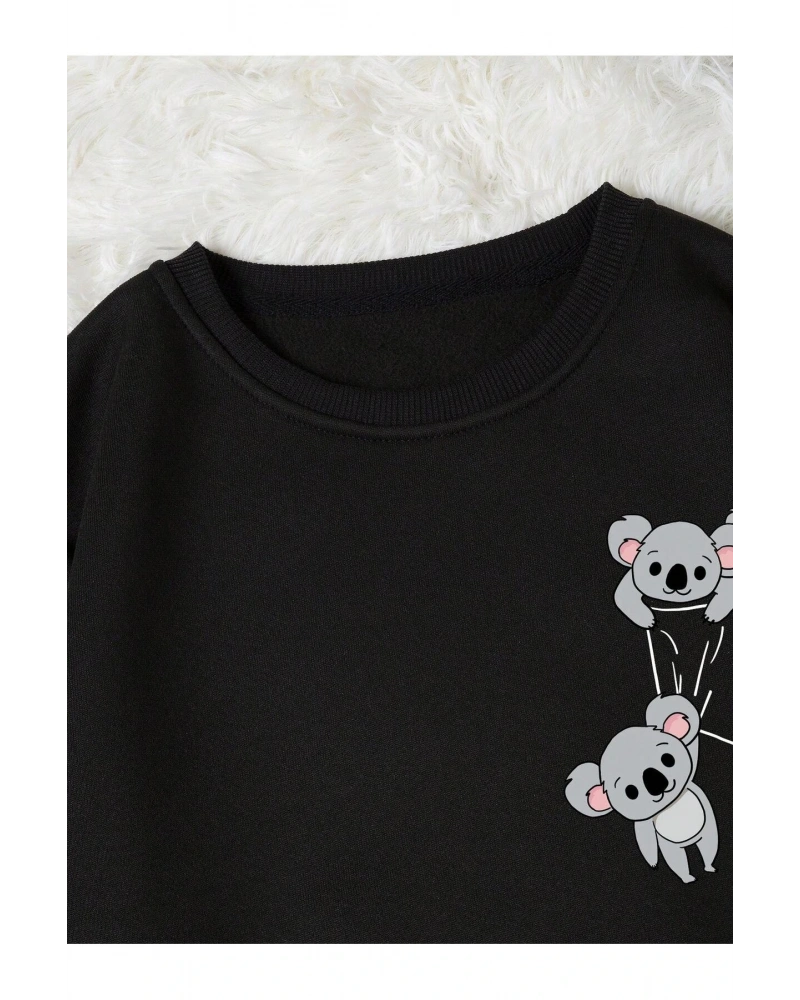 Coke serisi Koala Print Thermal Lined Sweatshirt