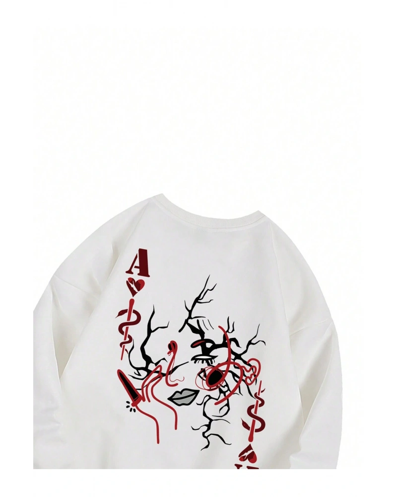 Manfinity EMRG Cartoon And Slogan Graphic Sweatshirt Beyaz