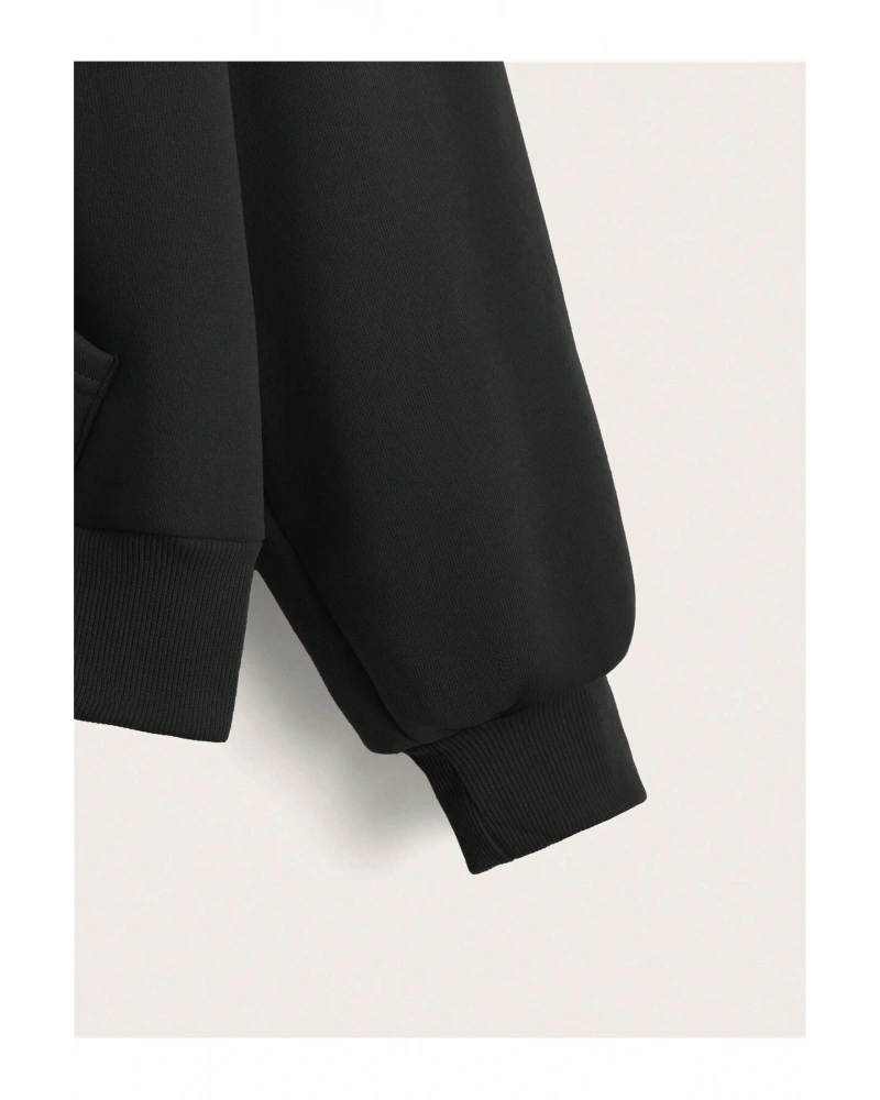 YQYQ----- Oversize Kulaklık Genç Kız Siyah Beyaz Tasarım Baskılı Unisex Kapüşonlu Sweatshirt Hoodie