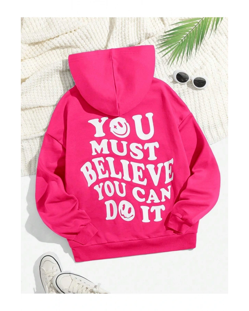 Coke serisi Slogan & Cartoon Graphic Hoodie