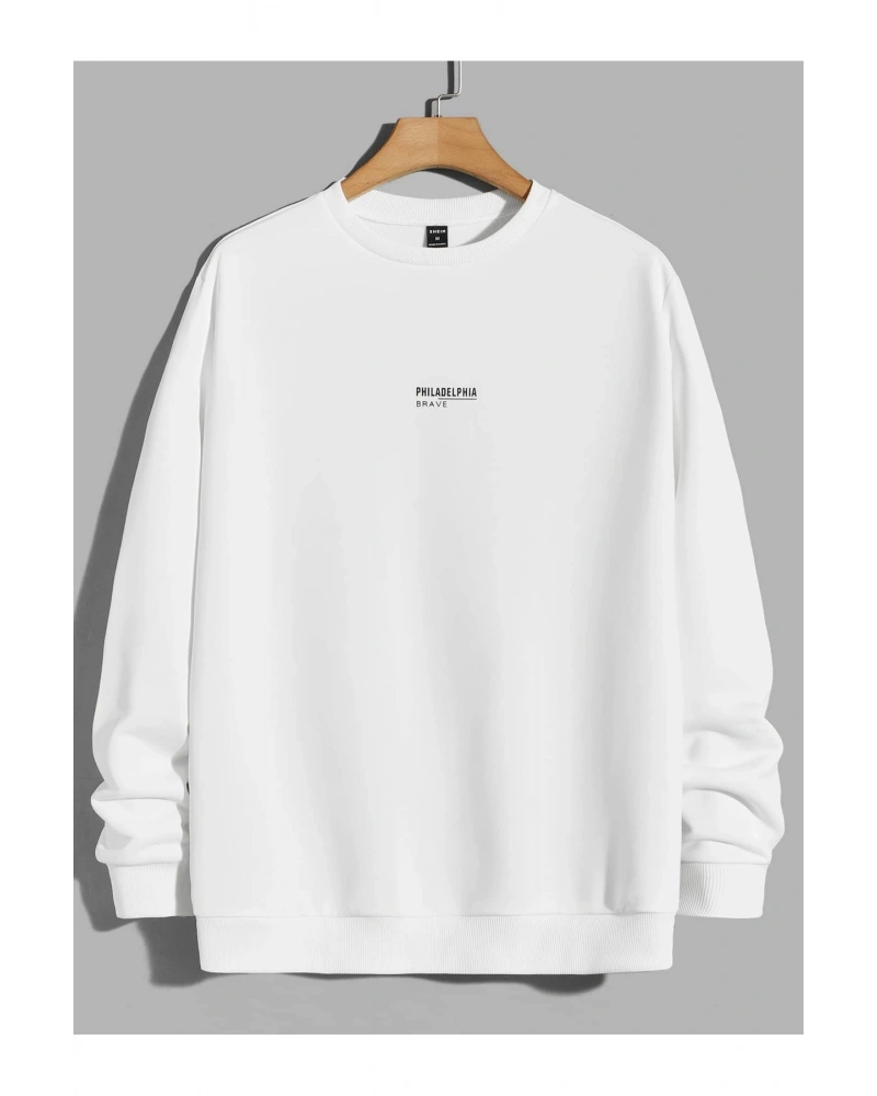 Siyah Yakasız Tüy Baskılı Unisex Sweatshirt