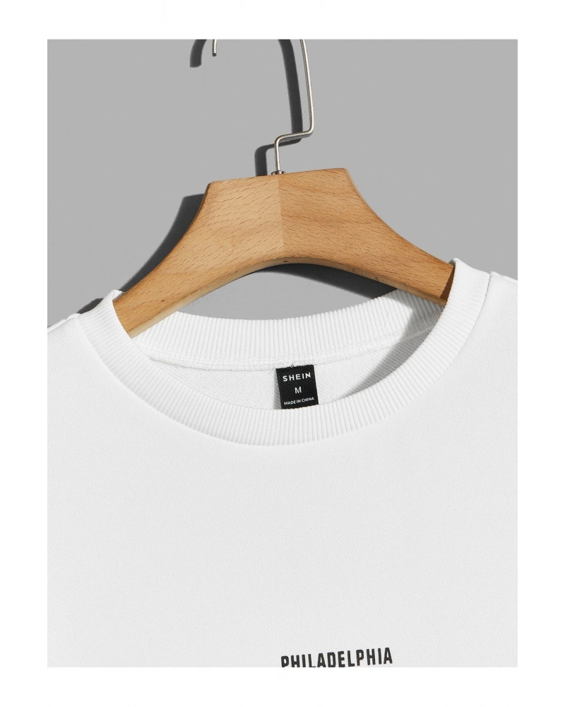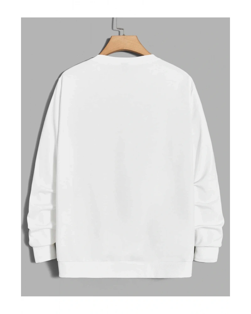 Manfinity EMRG Cartoon And Slogan Graphic Sweatshirt Beyaz