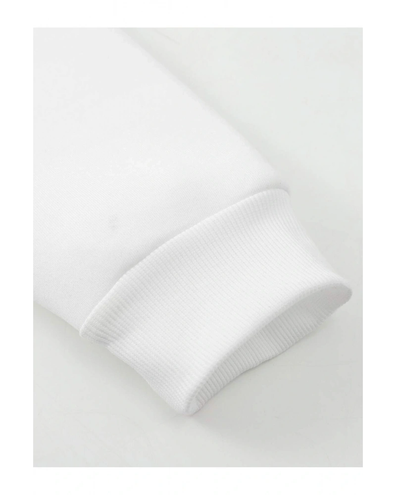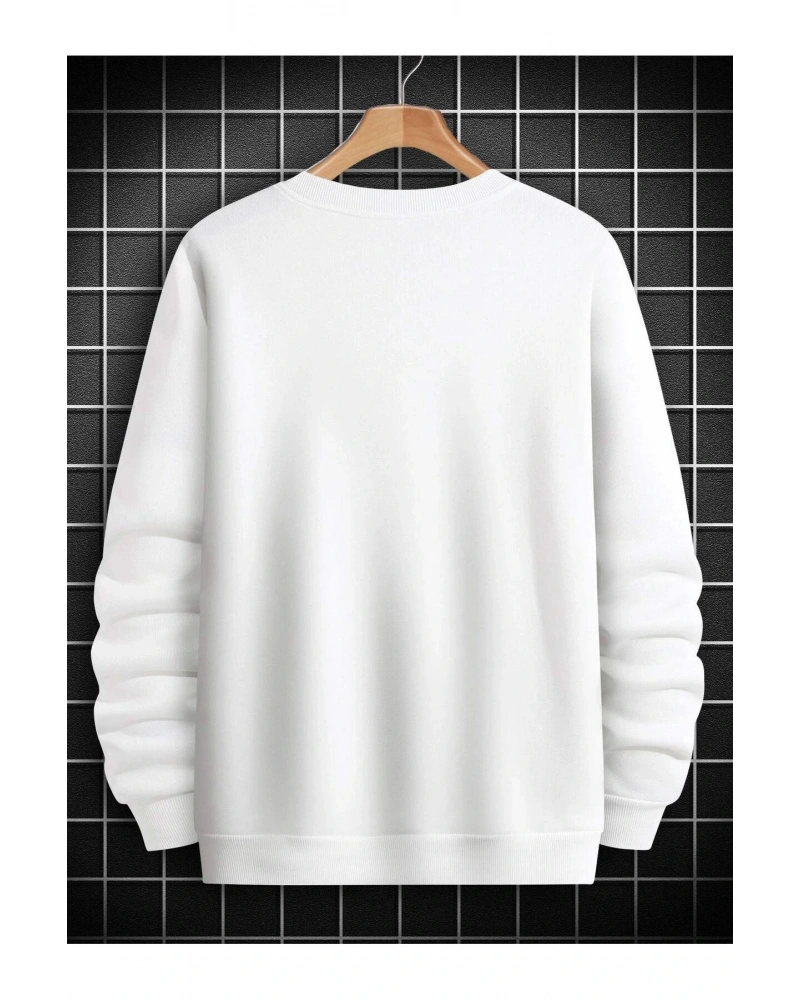 Siyah Yakasız Tüy Baskılı Unisex Sweatshirt