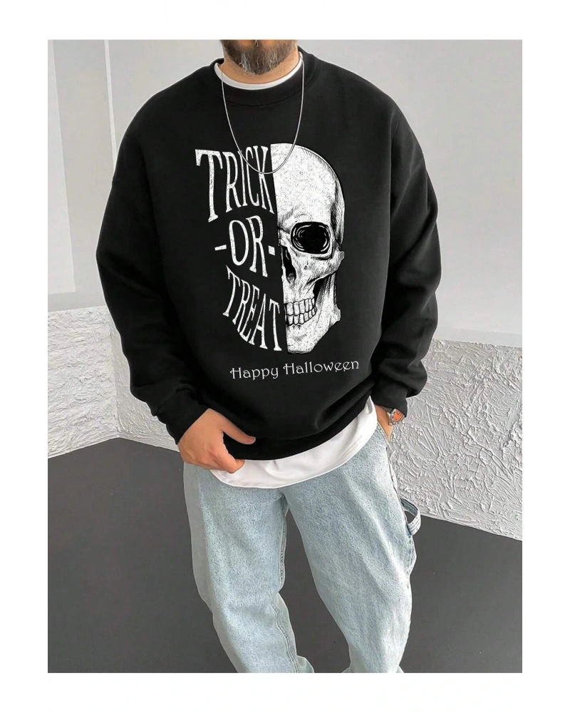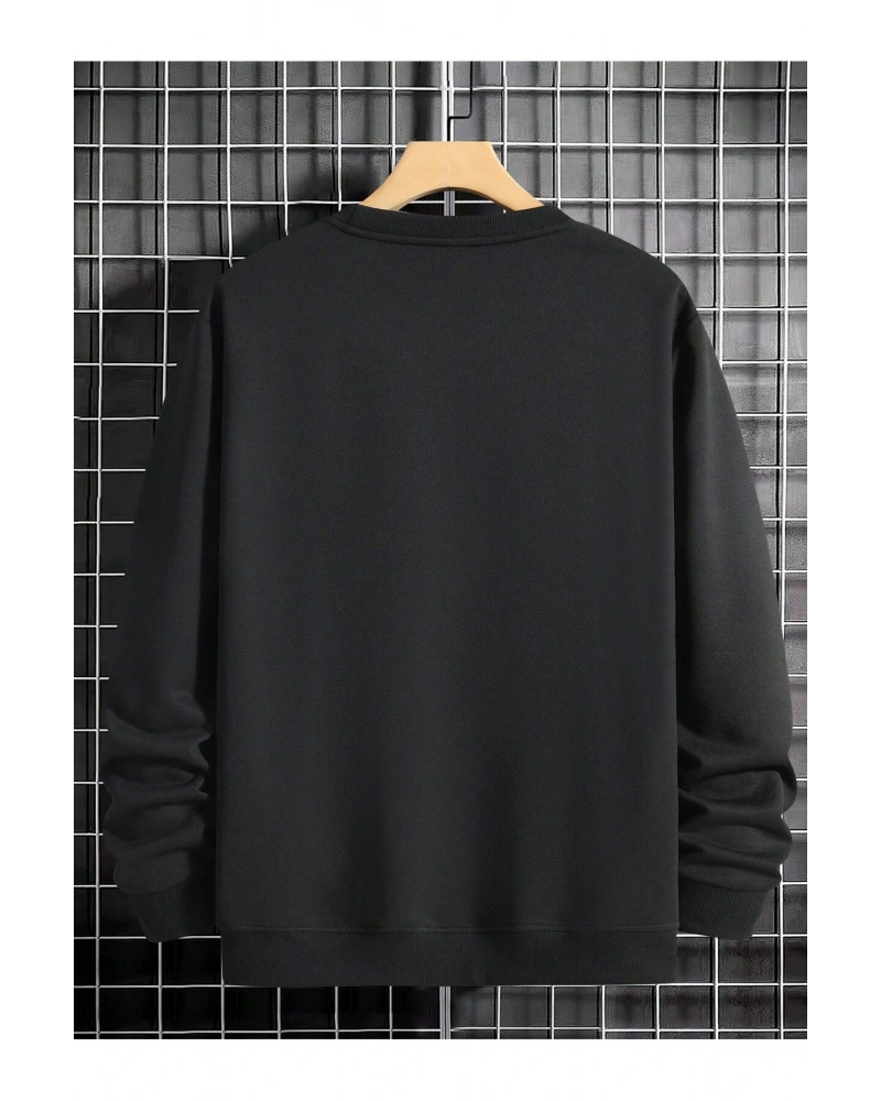 Siyah Yakasız Tüy Baskılı Unisex Sweatshirt
