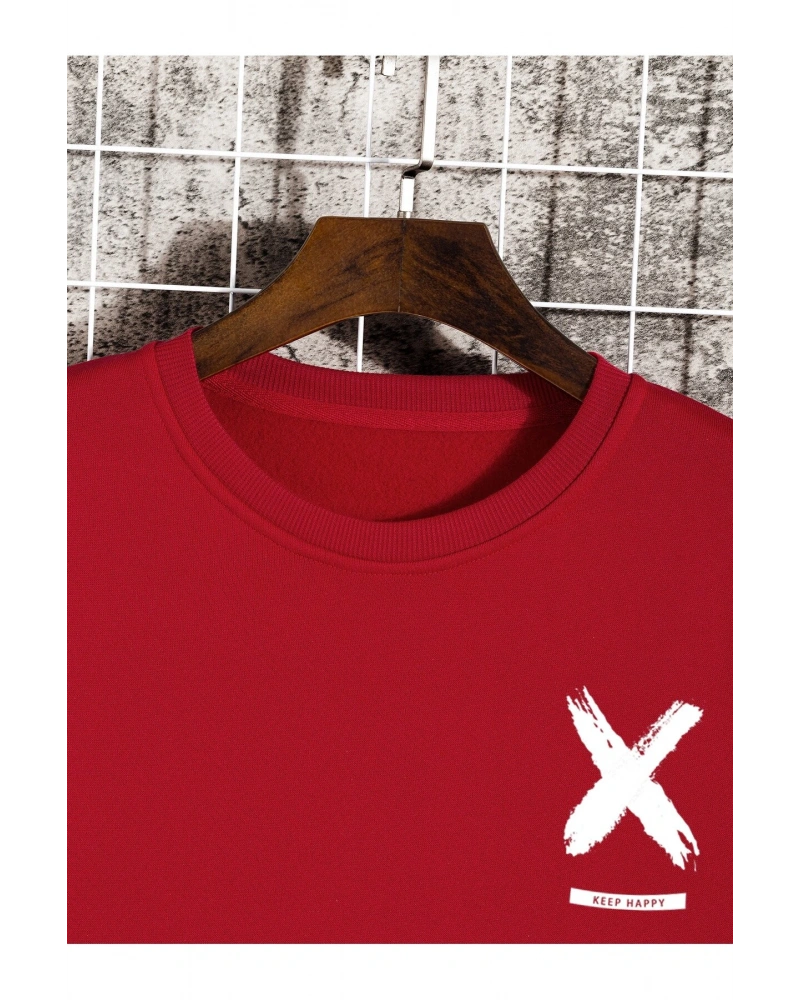 Siyah Yakasız Tüy Baskılı Unisex Sweatshirt