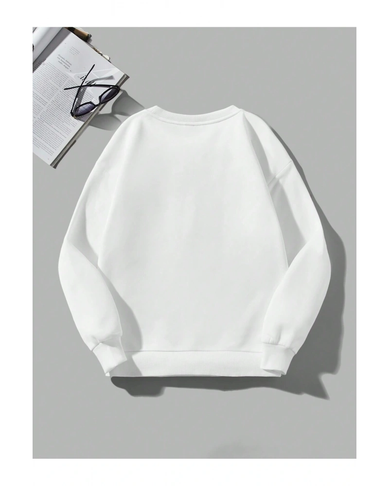 Manfinity EMRG Cartoon And Slogan Graphic Sweatshirt Beyaz