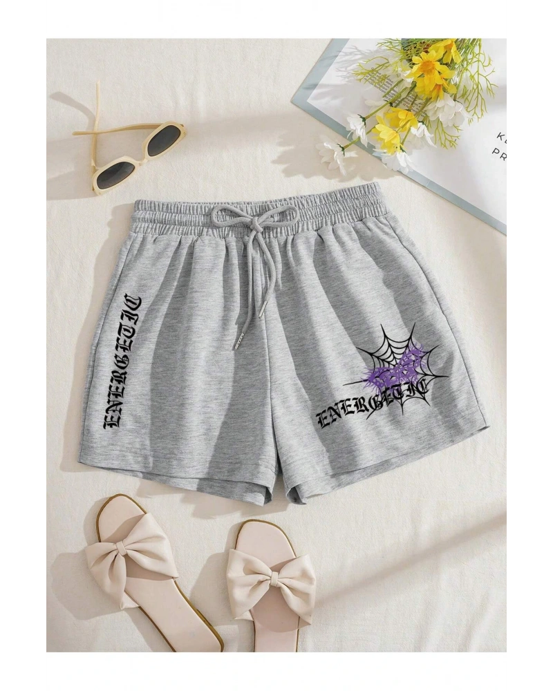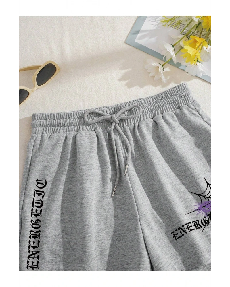 Coolane Butterfly & Letter Graphic Drawstring Waist Şort