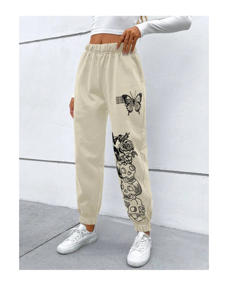 Expression Print Drawstring Waist Eşofman Altı
