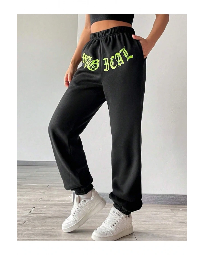 Sporsity Letter Graphic Drawstring Waist Eşofman Altı