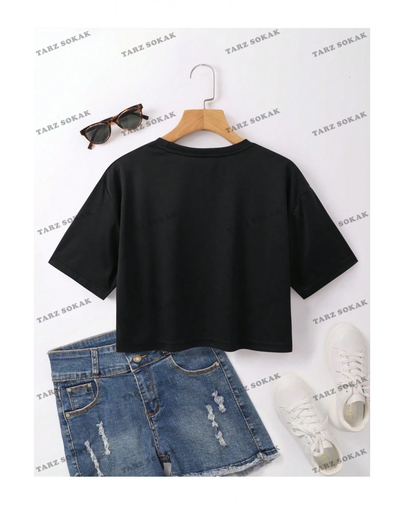 Crop CKOD-232913 Kalp ve Slogan Baskılı Kısa Kollu Kısa