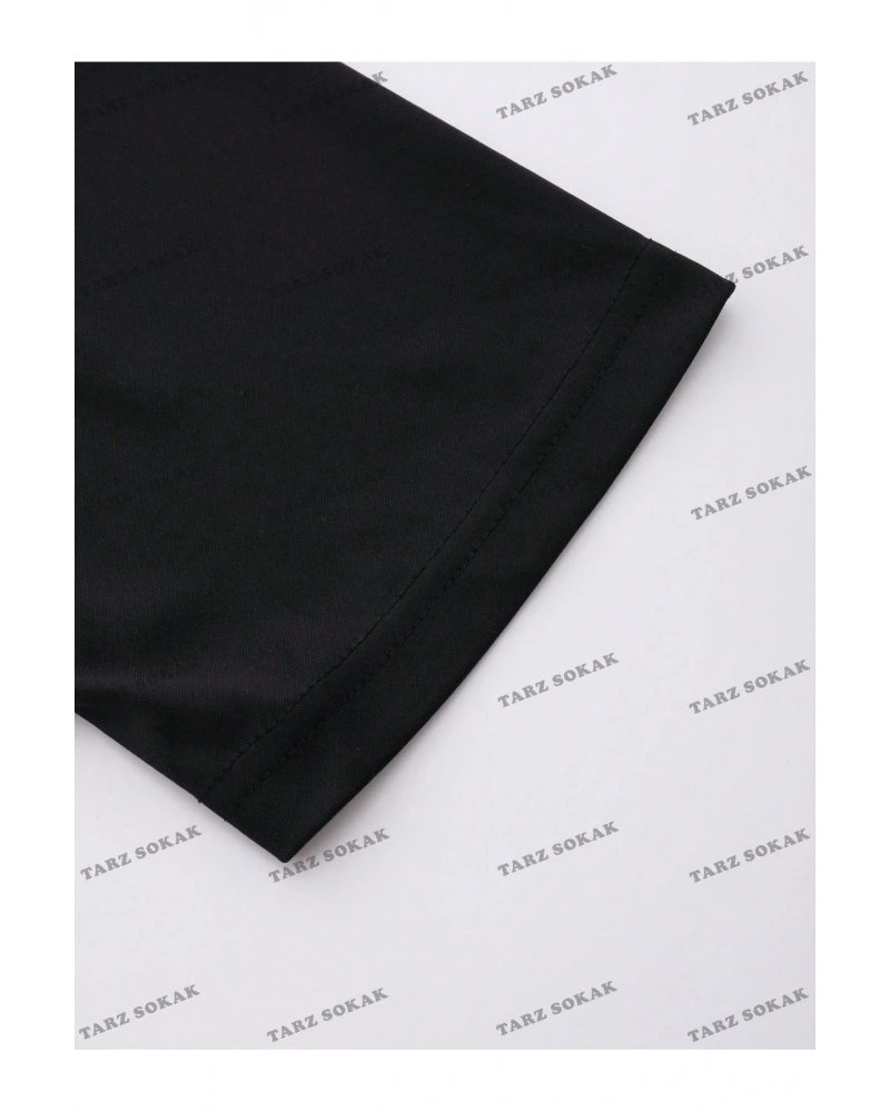 Siyah Oversize Çift Renk TÜY Baskılı Unisex Tshirt
