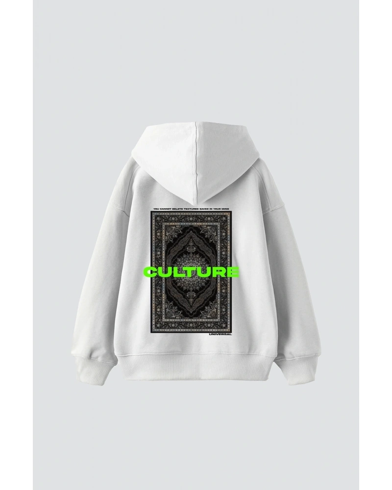 Culture Etnik Baskılı Oversize Unisex Premium Beyaz