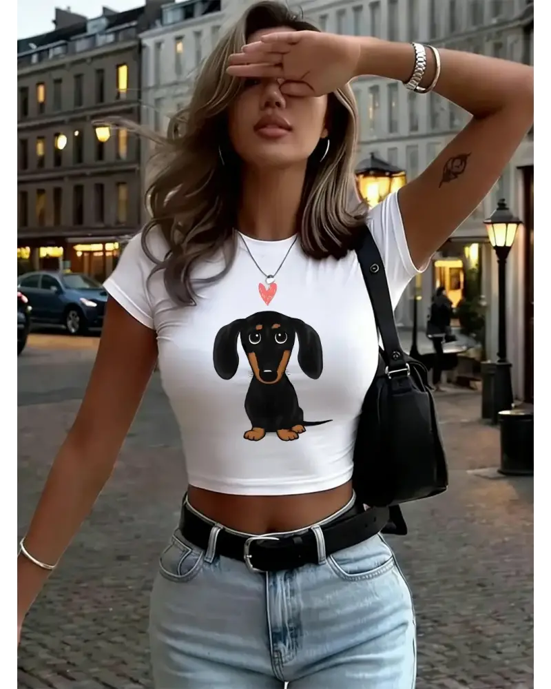 Dachshund Kalp Desenli Kadın Babby TeeT-Shirt Yaz Yumuşak Yüksek Elastik Üstler Seksi Uyumlu İnce kaliteli malzeme ve konforlu kullanım sunan bir üründür. Günlük kullanım için ideal olup uygun fiyat ve hızlı kargo avantajıyla sunulmaktadır.