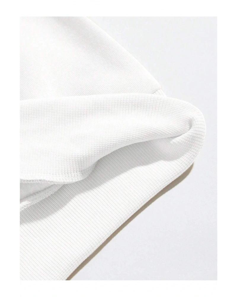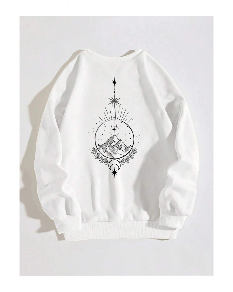 Dağ ve Güneş Desenli Damla Omuz Sweatshirt Beyaz
