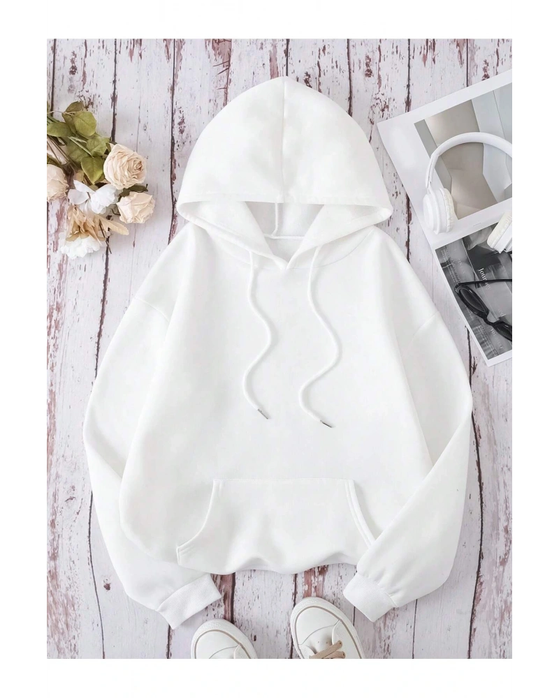 YQYQ----Oversize Mor Saçlı Lila Genç Kız Tasarım Baskılı Unisex Kapüşonlu Sweatshirt Hoodie Beyaz