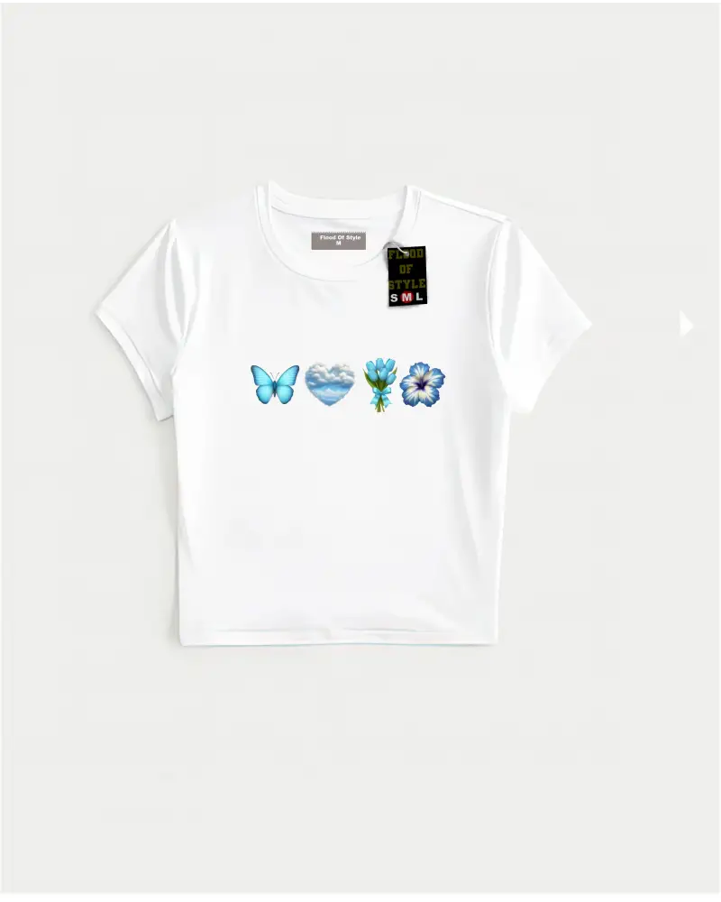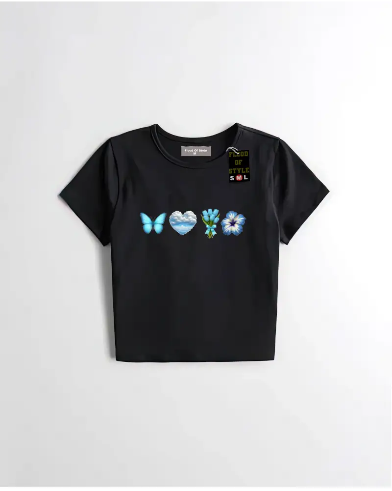 Kelebek Kalp Grafik Baskı Bayan Kırpma T-Shirt Yaz Yüksek Elastik Yumuşak Üstler Y2K İnce T G