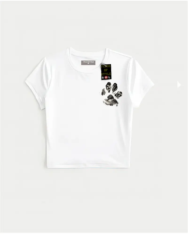 Beyaz Babby Tee minimal kedi patisi Özel tasarım
