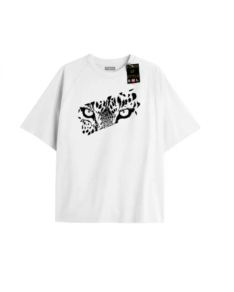 Beyaz Oversize T-shirt aslan gözü minimal Özel tasarım