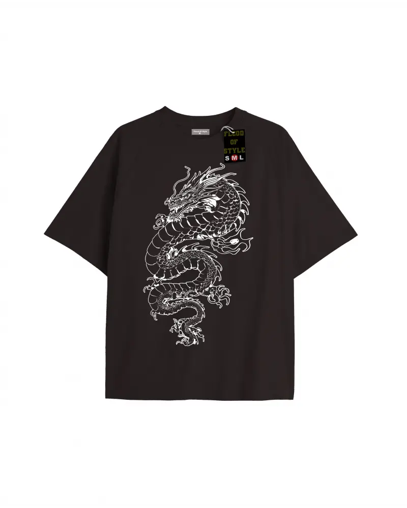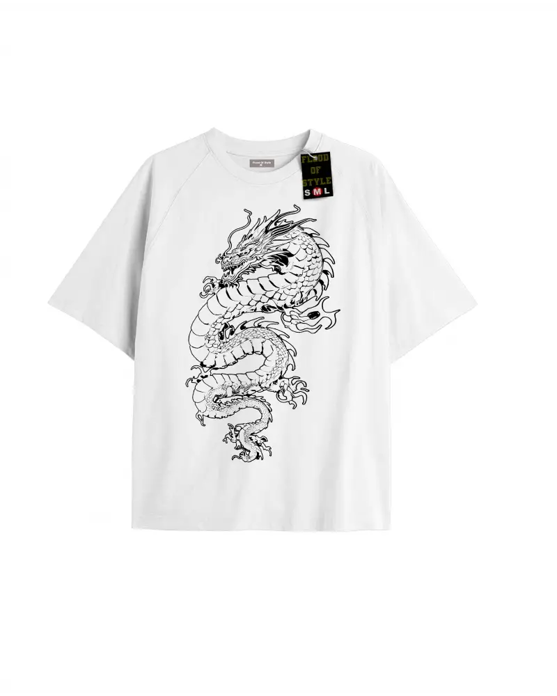 Beyaz Oversize T-shirt ejdarha Özel tasarım