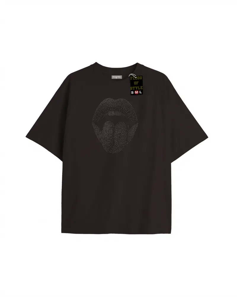 Beyaz Oversize T-shirt taş desenli agız Özel tasarım