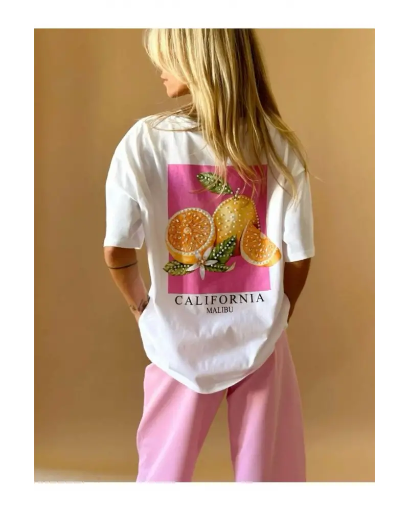 - Rahat kesimi ile günlük kullanım için ideal, oversize kalıba sahip kadın t-shirt.; - Kısa kollu tasarımıyla yaz aylarında serinlik ve konfor sunar.; - Dijital baskı teknolojisi kullanılarak üretilmiş canlı ve net desenlerle stilinizi yansıtır.; - Bisiklet yakası sayesinde modern ve şık bir görünüm sağlar.; - Cepsiz yapısıyla minimalist bir tarz sunarken, pratikliği ön planda tutar.; - Süprem dokuma tipi, dayanıklılığı artırarak uzun süreli kullanım imkanı tanır.; - Yıkama talimatlarına uygun şekilde bakım yapıldığında formunu korur; böylece t-shirtünüz ilk günkü gibi kalır.; - Türkiye'de üretilmiş olup yerel kaynaklı malzemelerden elde edilmiştir.; - Standart boy seçeneğiyle her bedene uyum sağlayacak şekilde tasarlanmıştır.; - Genç yaş grubuna hitap eden dinamik ve trend odaklı bir tasarıma sahiptir.; - Kadın veya kız kullanıcılar için özel olarak hazırlanmış bu t-shirt, gardrobunuzda vazgeçilmez bir parça haline gelecek.;