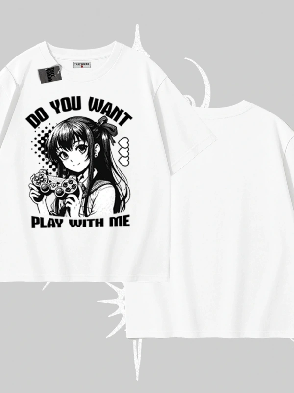Oversize Tshirt Do You Want Play With Me Anime Kız Baskılı