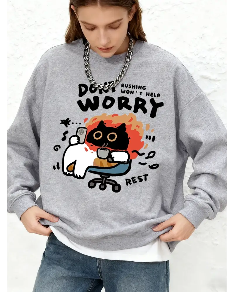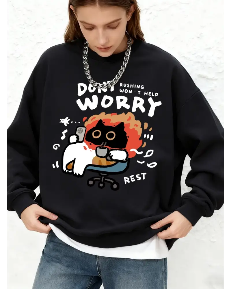 Endişelenmeyin Kedi Baskılı Kapüşonlu Üstler Bayanlar İçin Basit Sıcak Uzun Kollu Sweatshirt, Tarzsokak kalitesiyle üretilmiş modern streetwear ürünüdür. oversize hoodie, sweatshirt, kapşonlu sweatshirt, streetwear hoodie kategorisinde öne çıkan bu model; rahat kalıbı, kaliteli kumaşı ve uzun ömürlü baskısıyla fark yaratır. Günlük kombinlerde stilinizi yansıtırken maksimum konfor sağlar. Hemen sipariş ver, uygun fiyat ve hızlı kargo avantajını yakala.