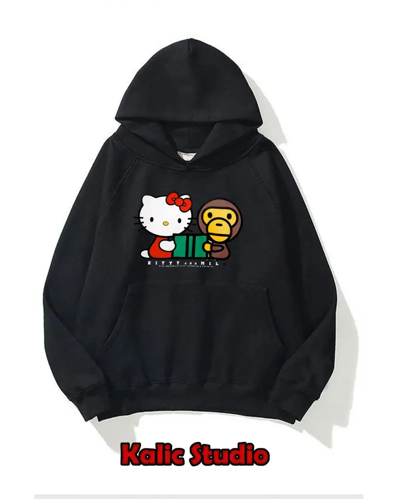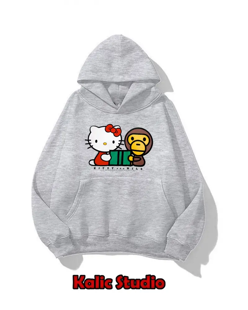 - Kış aylarında sıcak tutan, günlük kullanım için ideal bir sweatshirt.; - Dijital baskı teknolojisi ile üretilmiş Hello and Milo temalı deseniyle dikkat çeker.; - Pamuk materyali sayesinde yumuşak dokunuşu ve konforlu yapısıyla öne çıkar.; - Uzun kollu tasarımı ile mevsim koşullarına uygun koruma sağlar.; - 2 iplik şardonlu dokuma tipi, dayanıklılığı artırarak uzun süreli kullanım imkanı sunar.; - Kapüşonlu yaka tipi hem stil sahibi görünüm kazandırır hem de soğuktan korur.; - Tekli paket içeriğiyle kolayca tercih edilebilir ve pratik kullanım sunar.; - Genç yaş grubuna hitap eden modern ve dinamik tasarım anlayışıyla gençlerin beğenisini toplar.; - Standart boy kesimiyle rahat hareket etme özgürlüğü tanırken, unisex cinsiyet seçeneği herkes tarafından tercih edilebilir hale getirir.; - Dokuma kumaş tipi kaliteli hissiyat vererek giyiminizi tamamlar.;