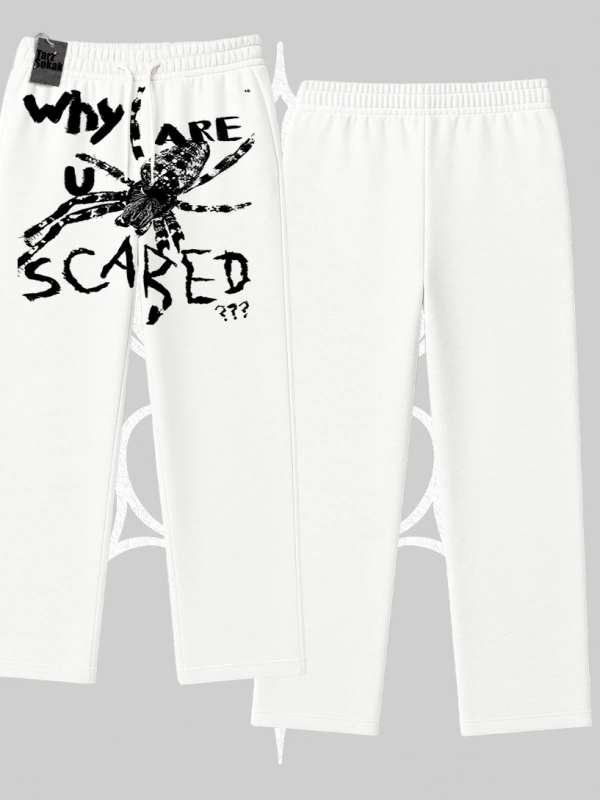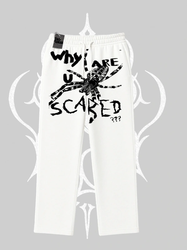 Beyaz Baggy Eşofman Altı Why are u Scared