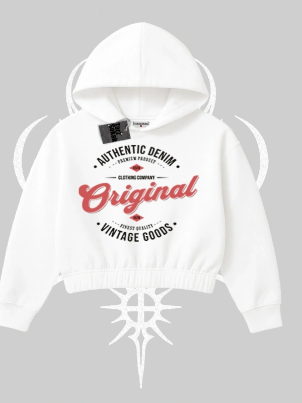 Kapşonlu Crop Sweatshirt Authentic Denim Original