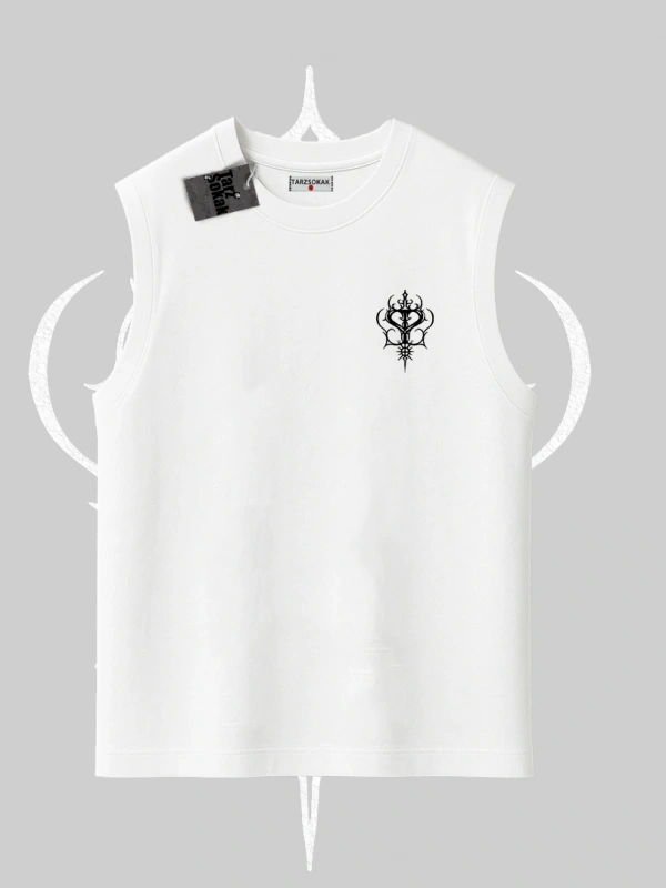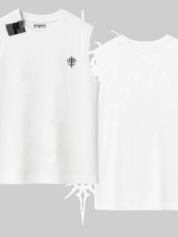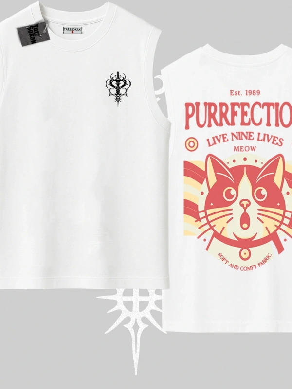Modern Kedi Temalı Arka Baskılı Kolsuz Tshirt