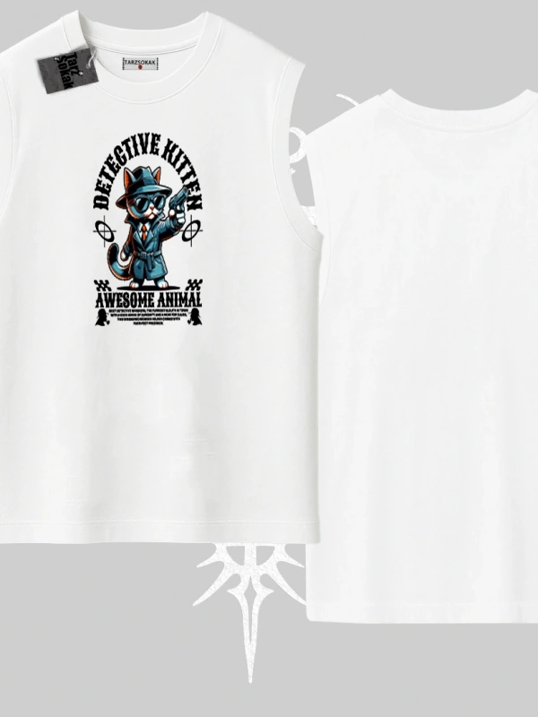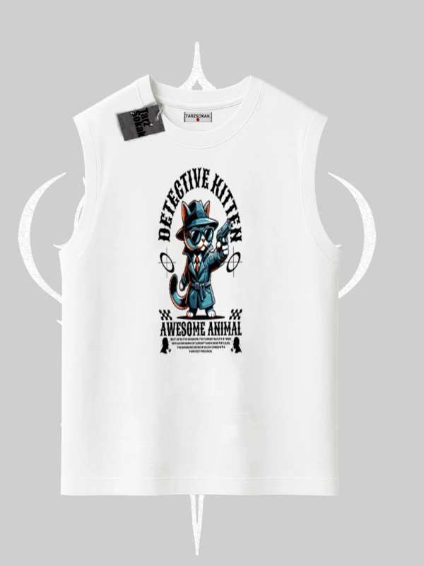 Detective Kitten Kedi Baskılı Kolsuz Tshirt