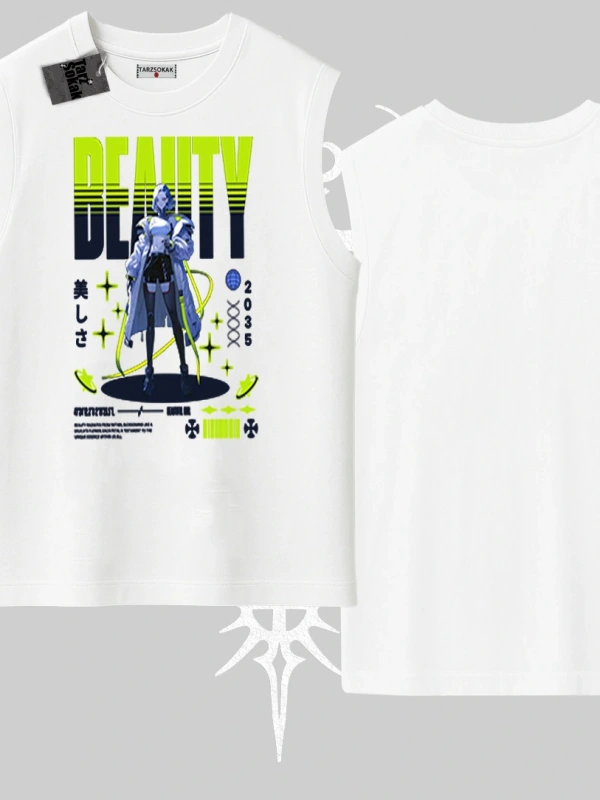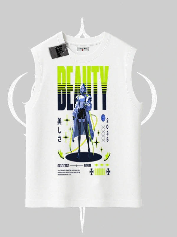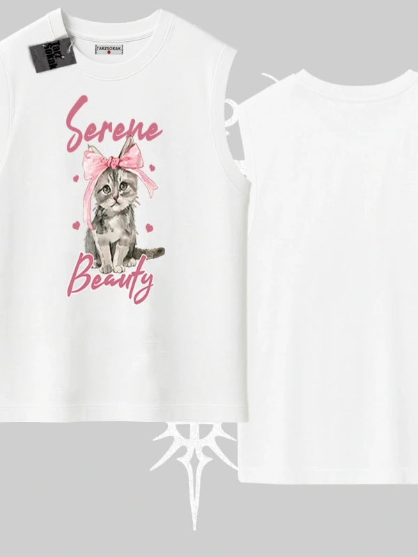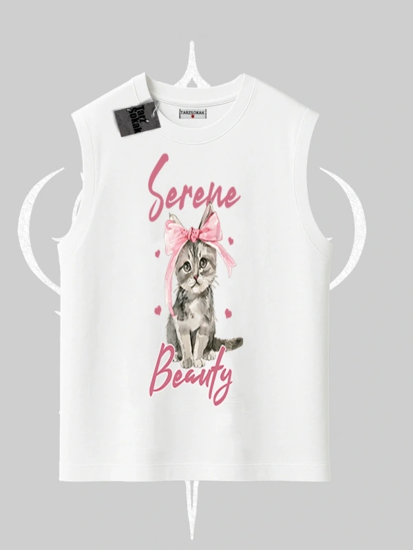 Serene Beauty Kedi Baskılı Kolsuz Tshirt