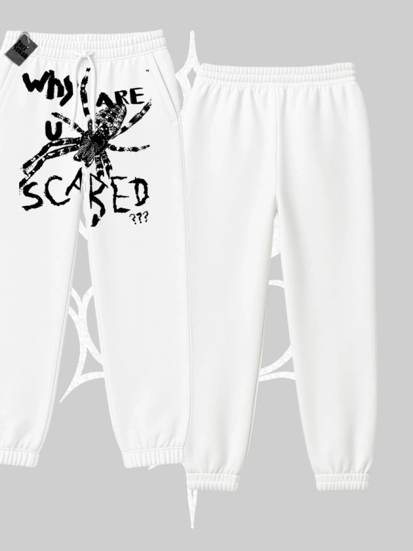 Beyaz Lastikli Eşofman Altı Why are u Scared